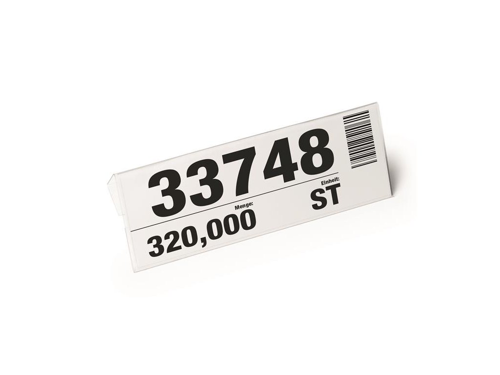 -priehľadné puzdro na dokumenty z tvrdenej PET fólie s ohybom, vhodné na zavesenie nad kartónové škatule, boxy alebo iné skladovacie nádoby