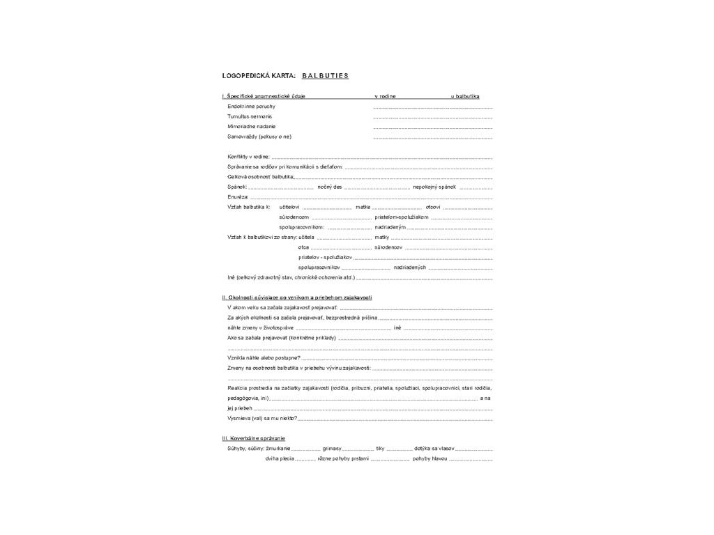 Logopedická karta: BALBUTIES A3