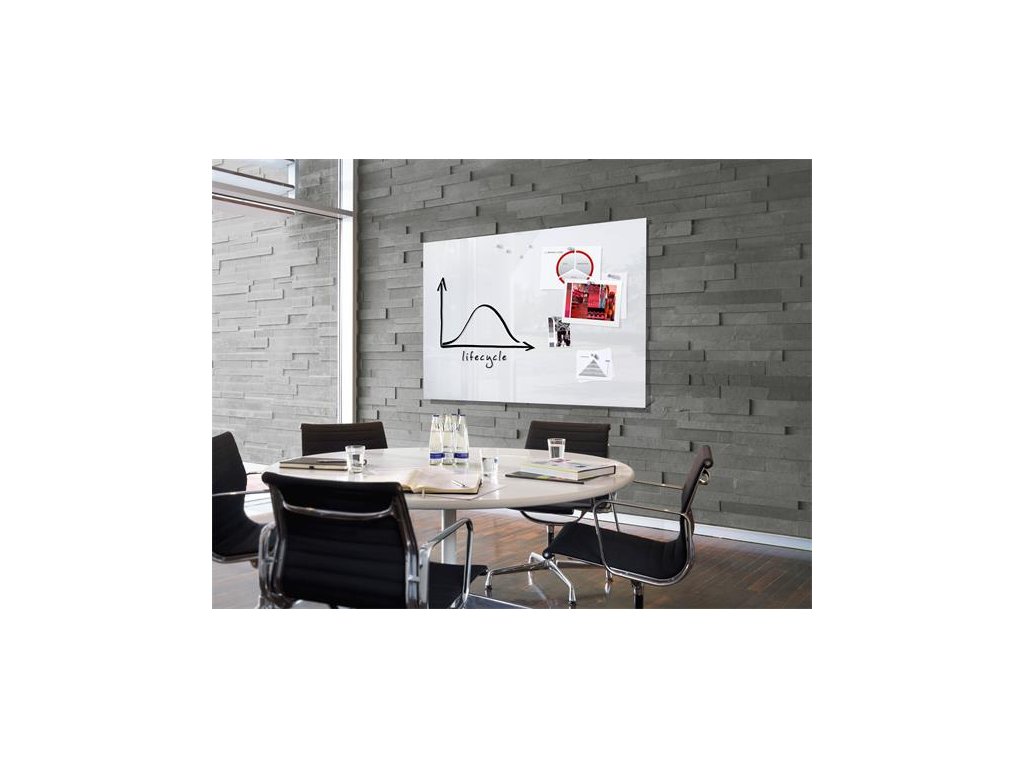 magnetický sklený povrch popisovateľné kriedovým popisovačom bez rámu, tepelne tvrdené sklo (EN 12150-1 bezpečnostné sklo) exkluzívny vzhľad v kanceláriach, konferenčných miestnostiach, jedálniach alebo doma zdá sa, akoby sa tabuľa vznášala v priestore balenie obsahuje 1× silnú magnetku „SuperDym” a všetky komponenty k správnemu uchyteniu tabule na stenu záruka: 25 rokov na povrchDodatočné parametre
