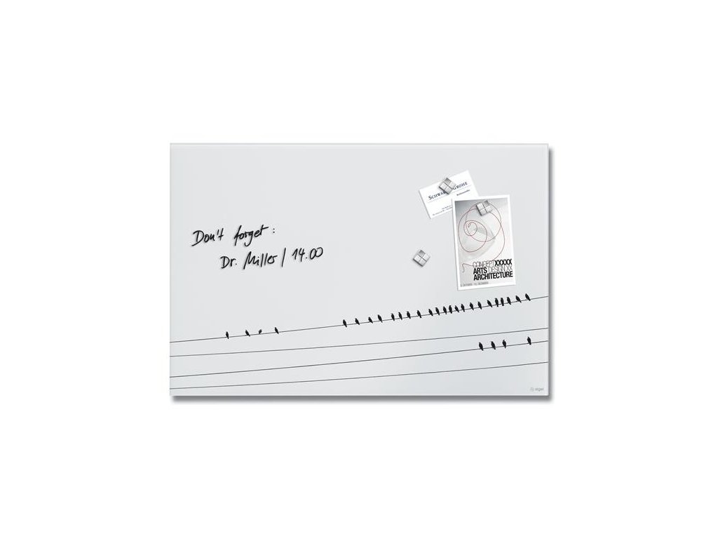 Magnetická sklenená tabuľa, 60x40x1,5 cm, SIGEL "Artverum® ", vzor Little birds, matná