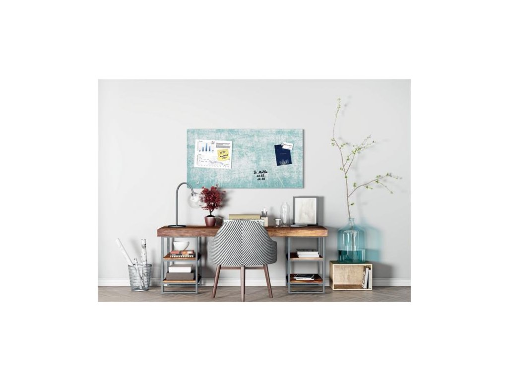 Magnetická sklenená tabuľa, 91x46x1,5 cm, SIGEL "Artverum® ", vzor steny, tyrkysová, matná