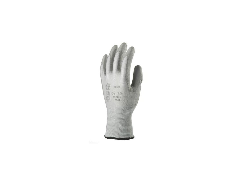 Montážne rukavice, sivé, na dlani namočené do polyuretánu, veľkosť: 7