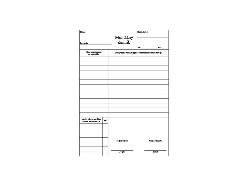 Montážny denník A4 - 100 listov