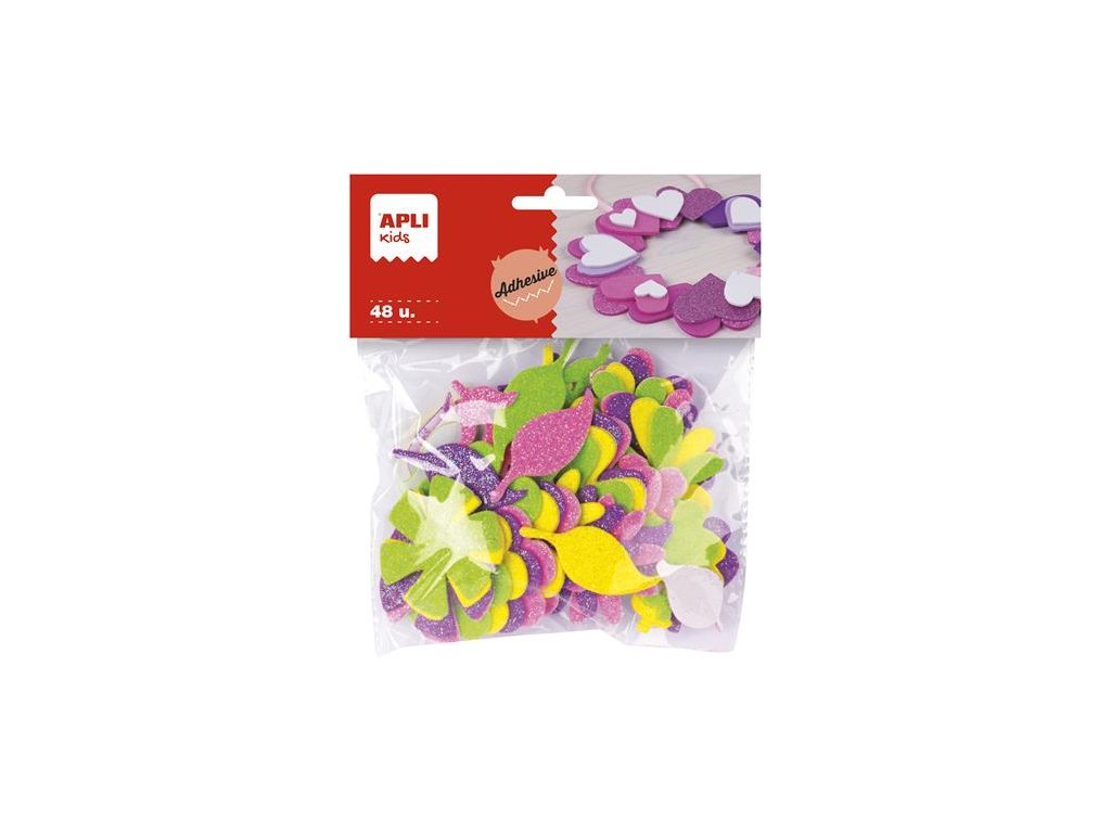 Moosguma, samolepiaca, glitter, kvety, APLI Kids "Eva Sheets", mix farieb
