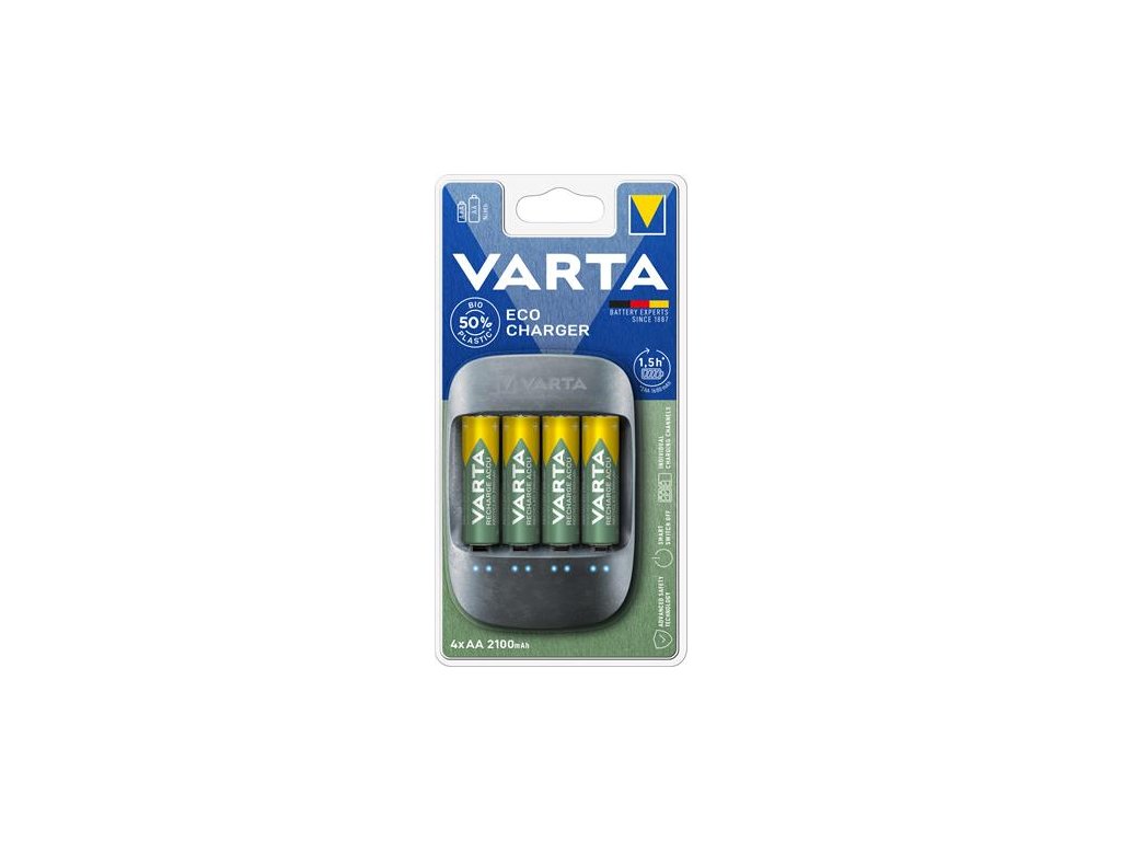 Nabíjačka batérií, AA tužkové batérie/AAA mikrotužkové batérie, 4x2100 mAh, VARTA "ECO"