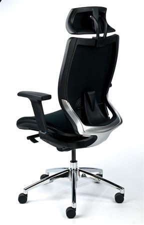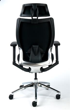Manažérska stolička, opierka hlavy, čierne čalúnenie, sieťové operadlo, hliníkový podstavec, MAYAH "Crown"