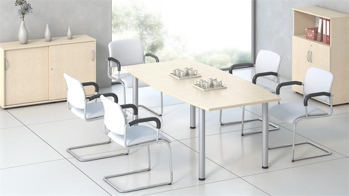 Konferenčný stolík, zakrivený, s nohami zo šedého kovu, 80/75x190cm, MAYAH "Freedom SV-43", javor