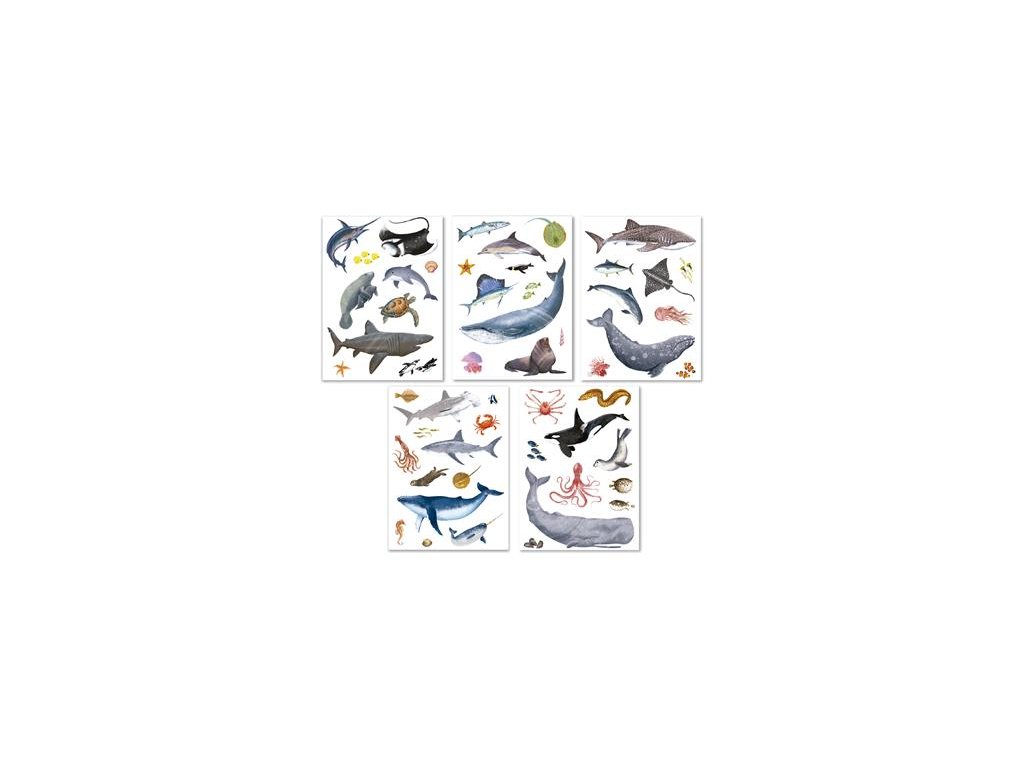 Nálepky, znova použiteľné, 50 ks, APLI Kids "Stickers", morské živočíchy