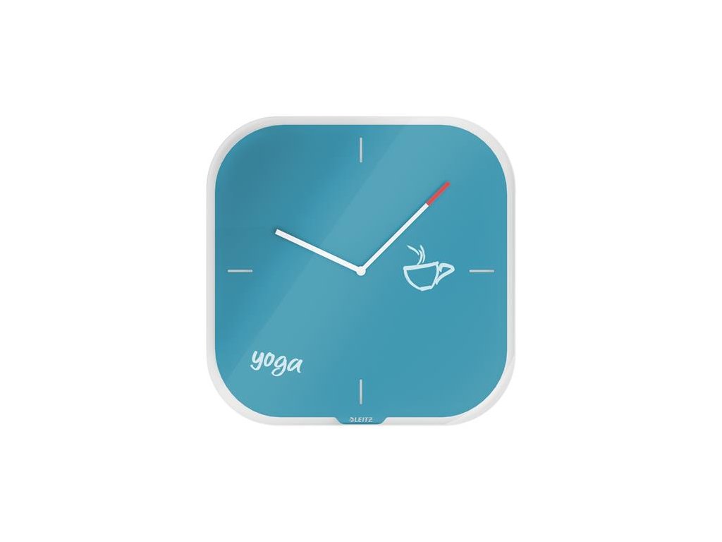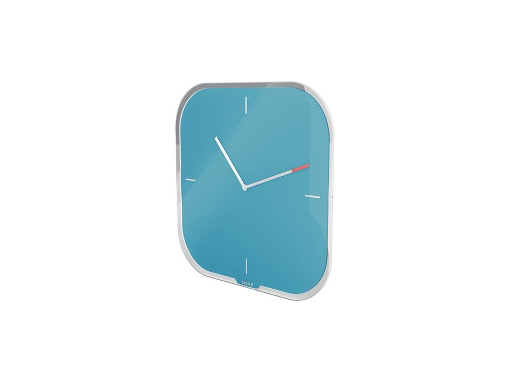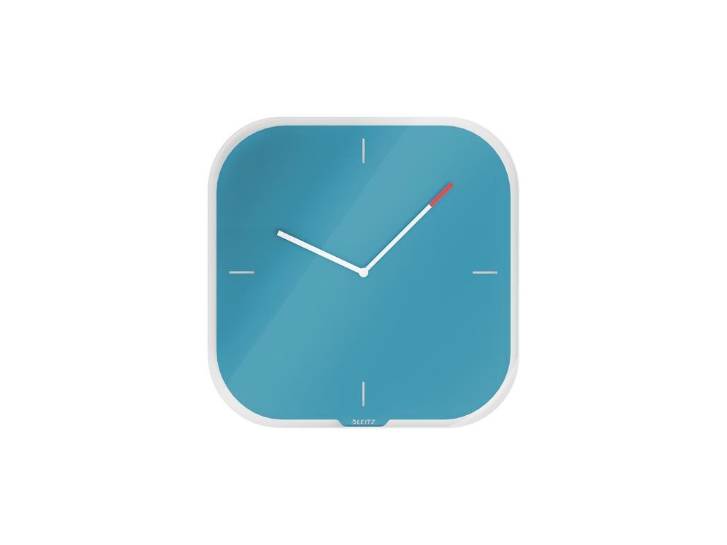 Nástenné hodiny, sklenené, štvorcové, 30x30 cm, LEITZ "Cosy", pokojná modrá