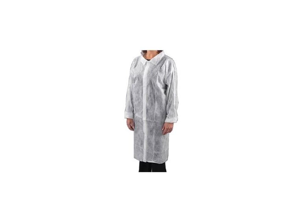 Návštevnícky plášť na jedno použitie chráni odev pred znečistením — ideálny pre návštevníkov v priemyselnom, laboratórnom alebo hygienickom prostredí. -materiál: netkaný polypropylén (20 gsm) -bez vrecka -so štyrmi zapínaniami na suchý zips -s golierom, na zápästiach s elastickým lemom -farba: biela -veľkosť: S (100 x 120 cm - dĺžka x šírka) -balenie: 10 ks/bal, 100 ks/kartónVýrobca/distribútor: Re-Guard Kft.