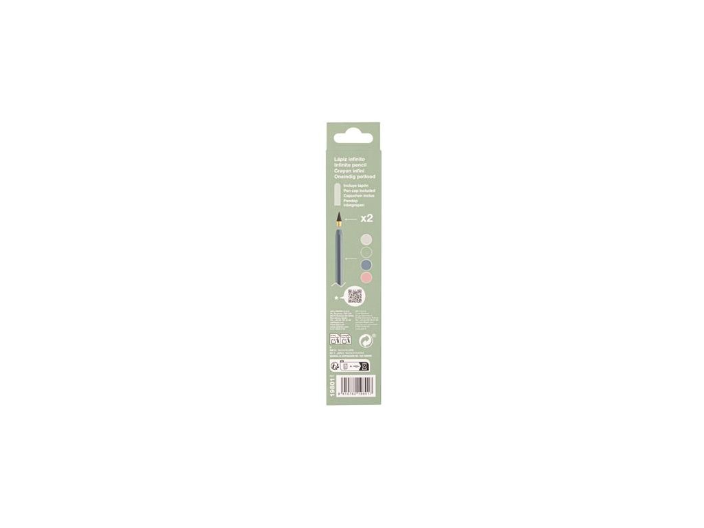 Každé balenie obsahuje: - 1x nekonečnú ceruzku Infinity - 1x náhradný hrot s tvrdosťou HB - 1x priehľadné viečko