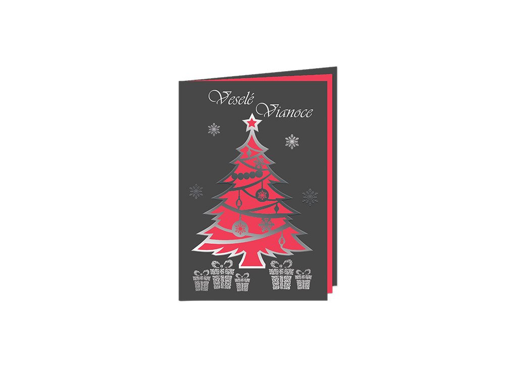 Novoročný pozdrav na grafickom papieri, laserový výsek, 3D lak zlatý, vario papierik v štyroch farebných prevedeniach. Dodávané spolu s obálkou. ČervenáDodatočné parametre
