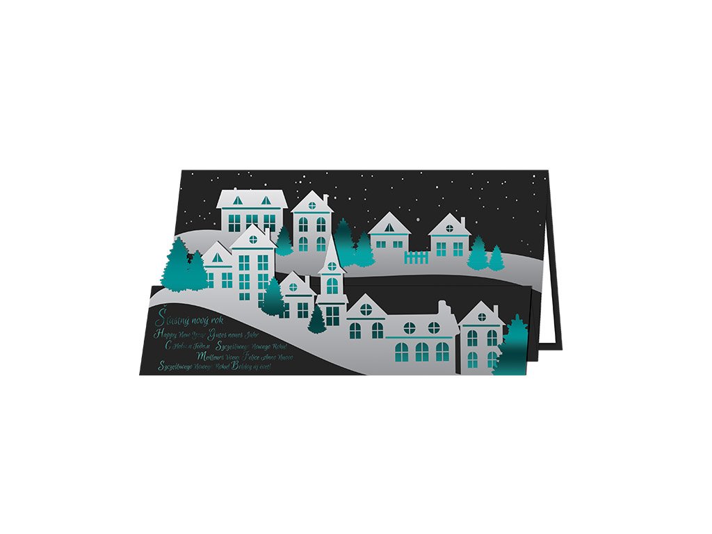 Novoročný pozdrav na grafickom papieri ,3D dizajn, strieborná a tyrkysová razba, vnútornný papierik biely. Dodávané spolu s obálkou.Dodatočné parametre
