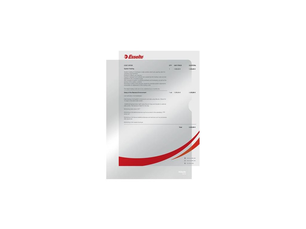 kvalitný "L" obal otvor zhora a zboku číry povrch recyklovateľný PP materiál Značka: ESSELTE Výrobca: Esselte Kft. Adresa: 1139 Budapest, Lomb u. 37-39. A ép. II. 8., Hungary Web: https://www.accobrands.com/brands/ Email: hungarymarketing@acco.comDodatočné parametre