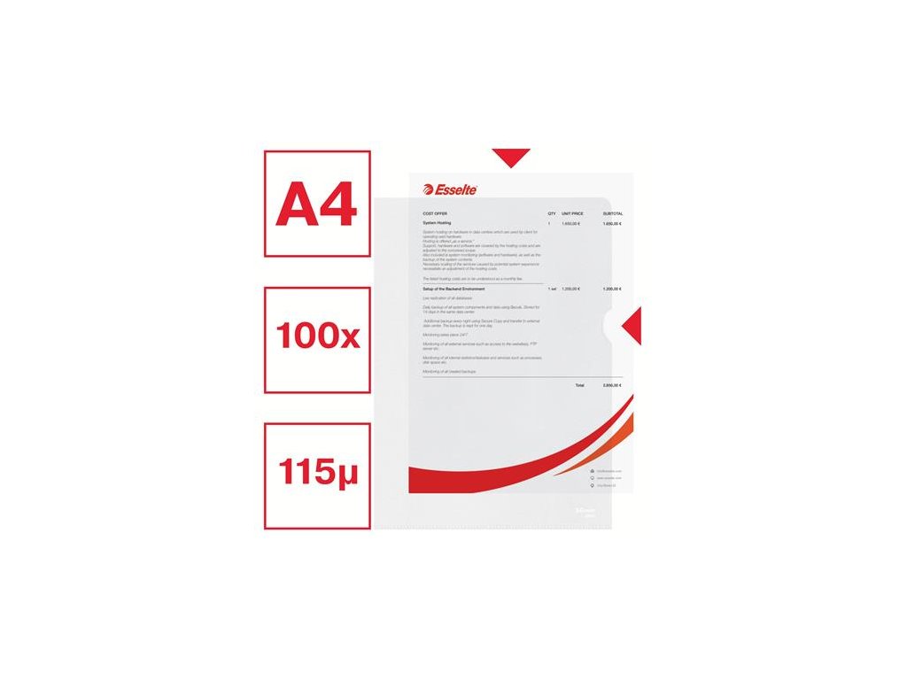 Obal, "L", A4, 115 mikr., drsný povrch, ESSELTE "Standard"