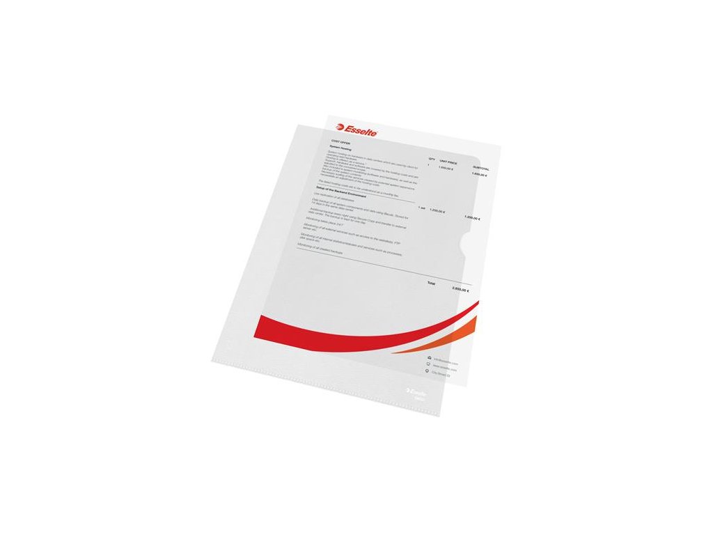 kvalitné obaly "L" pre každodenné použitie a praktický prenos dokumentov, otvor zhora a zboku drsný povrch 115 mikr, recyklovateľný PP materiál Značka: ESSELTE Výrobca: Esselte Kft. Adresa: 1139 Budapest, Lomb u. 37-39. A ép. II. 8., Hungary Web: https://www.accobrands.com/brands/ Email: hungarymarketing@acco.comDodatočné parametre
