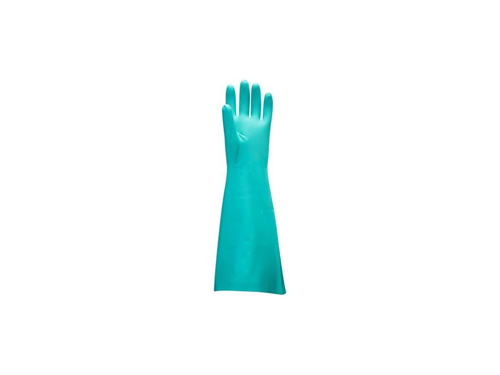Ochranné rukavice, nitrilové, chemicky odolné, dlhý rukáv, M, zelená