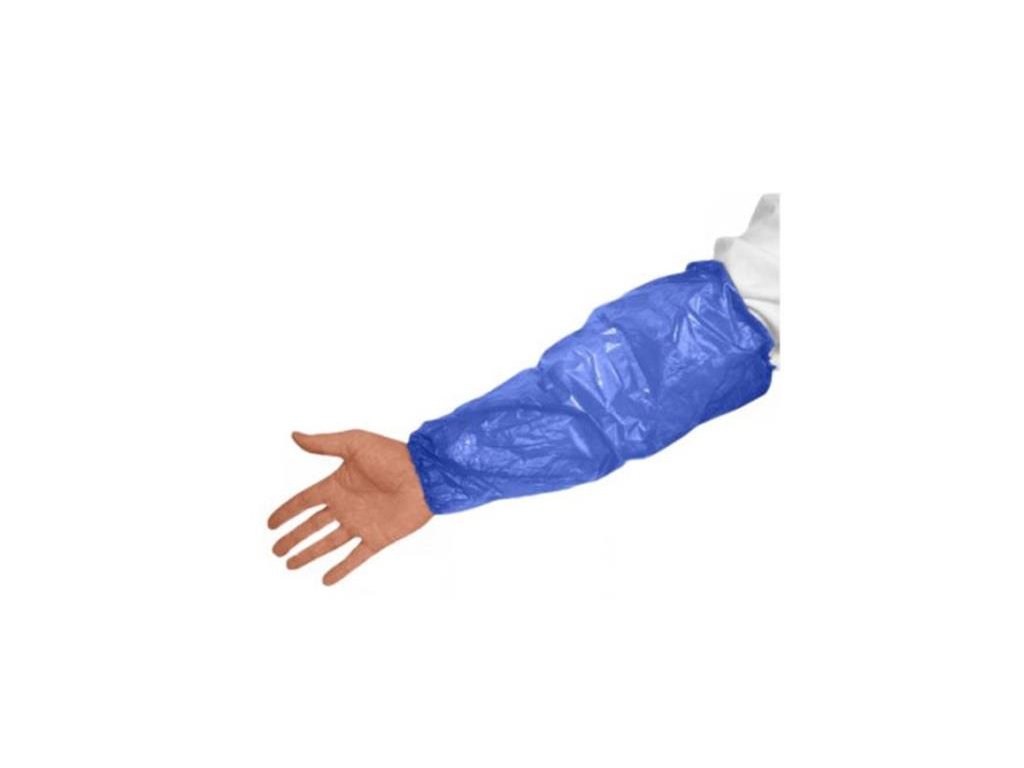 Fóliový ochranný návlek predlaktia, ktorý spĺňa normy bezpečnosti potravín. -materiál: polyetylén (LDPE, hrúbka: 0,02 mm) - s gumovými manžetami na koncoch -univerzálna veľkosť, dĺžka: 40 cm -farba: modrá -balenie: 100 kusov/balenie -20 kusov/kartón EVE: 1. kat. MD: 1 odd.Dodatočné parametre
