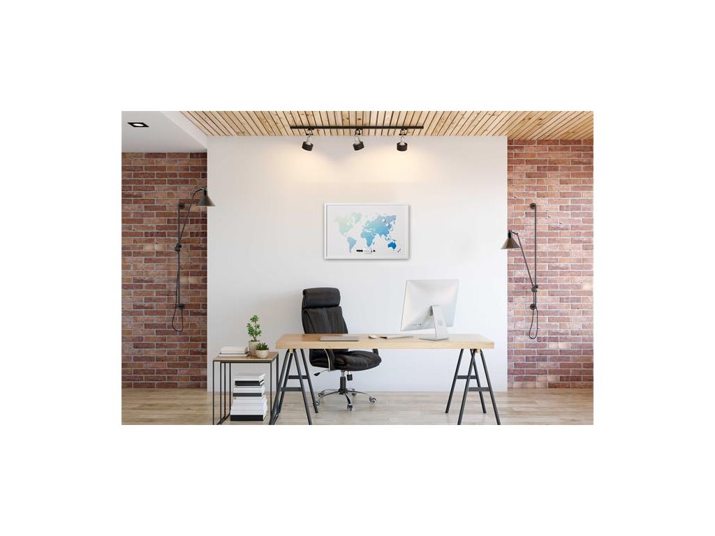 Odkazová tabuľa, magnetická, 60x40 cm, biely drevený rám, VICTORIA VISUAL, "Mapa sveta"