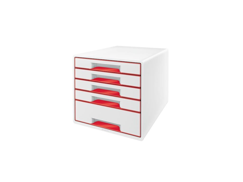 Odkladač, plastový, 5 zásuviek, LEITZ "Wow Cube", biela/červená