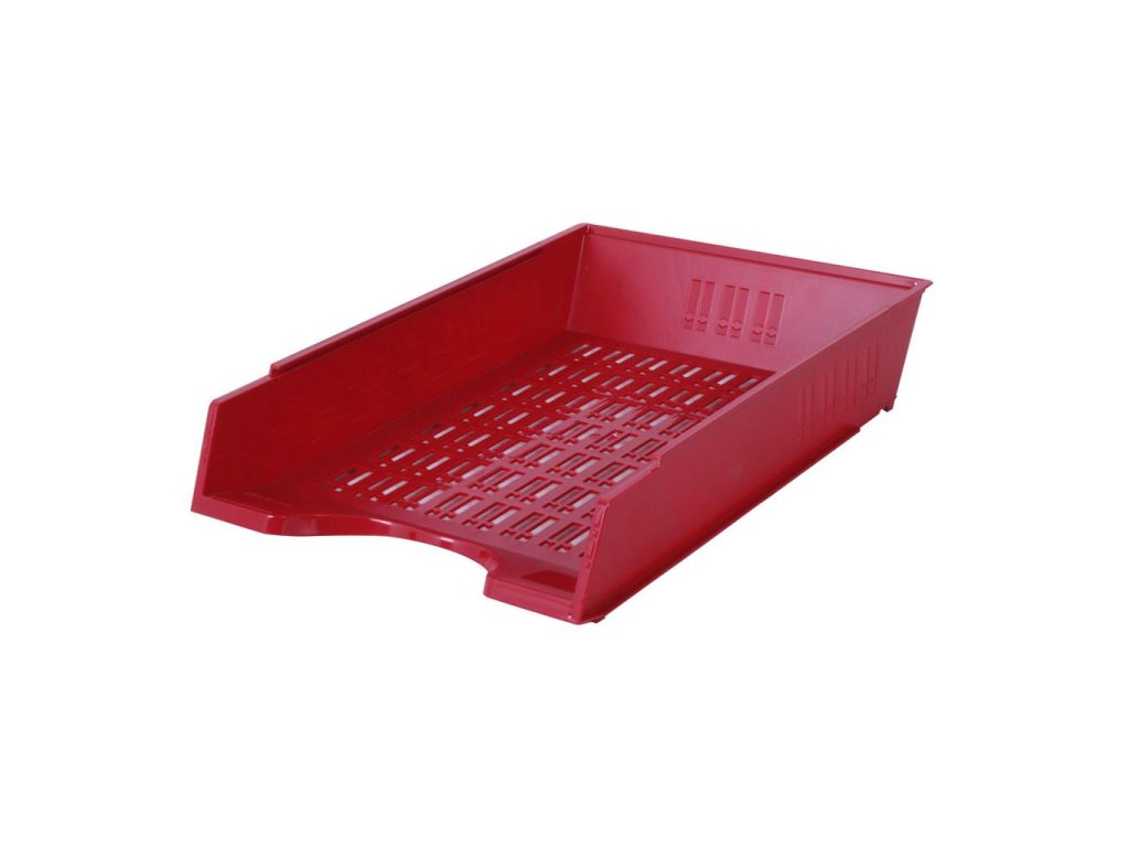 Plastový odkladač na papiere formátu A4 s možnosťou stohovania dozadu. Úprava priehľadná. Väčšie balenie 10 ks.Farba: červená.