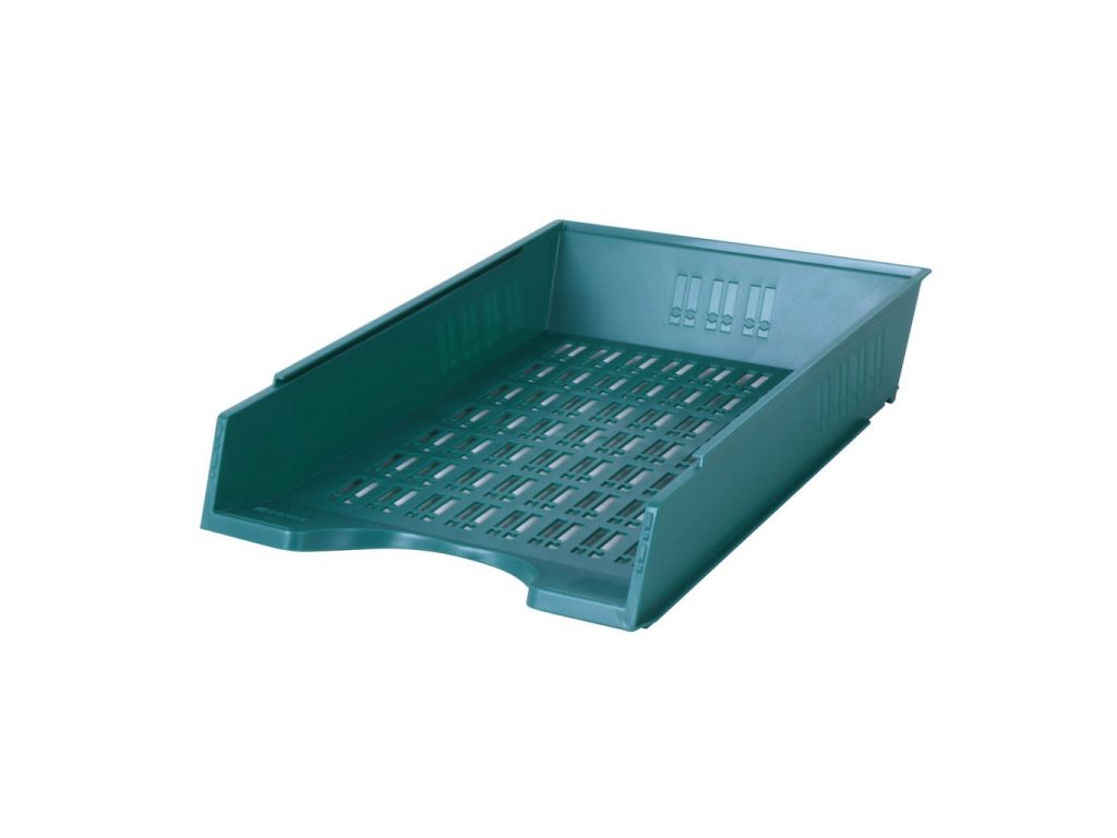 Plastový odkladač na papiere formátu A4 s možnosťou stohovania dozadu. Úprava nepriehľadná. Väčšie balenie 10 ks.Farba: zelená