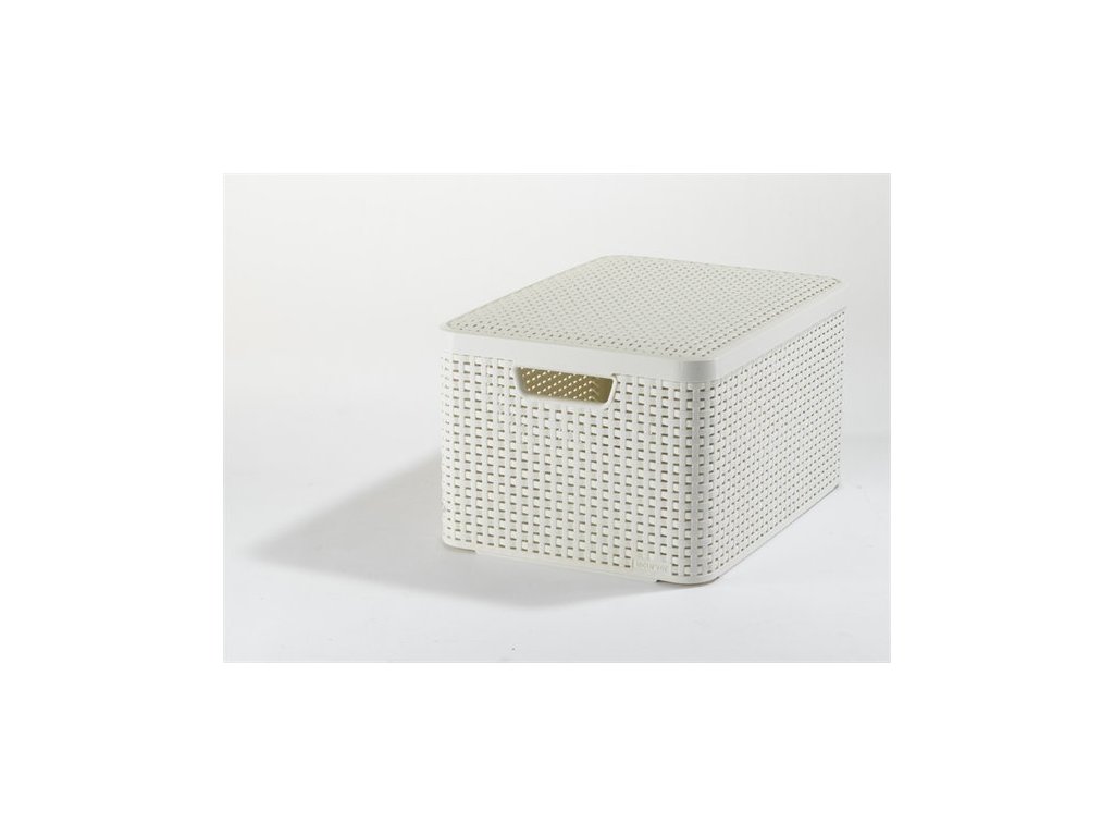 Odkladací box s vekom, s efektom rattanu, 30l, béžová, CURVER "Style L"