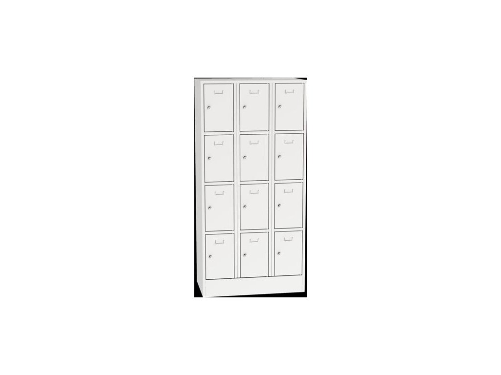 odolná oceľová skriňa s 12 priečinkami na odloženie hodnotých vecí bezpečnostný zámok, 2-2 kľúčmi na dverách držiak na etikety rozmery: 1850 x 900 x 500 mm (výška x šírka x hĺbka) rozmery priečinkov: 425 x 300 x 500 mm (výška x šírka x hĺbka)Dodatočné parametre
