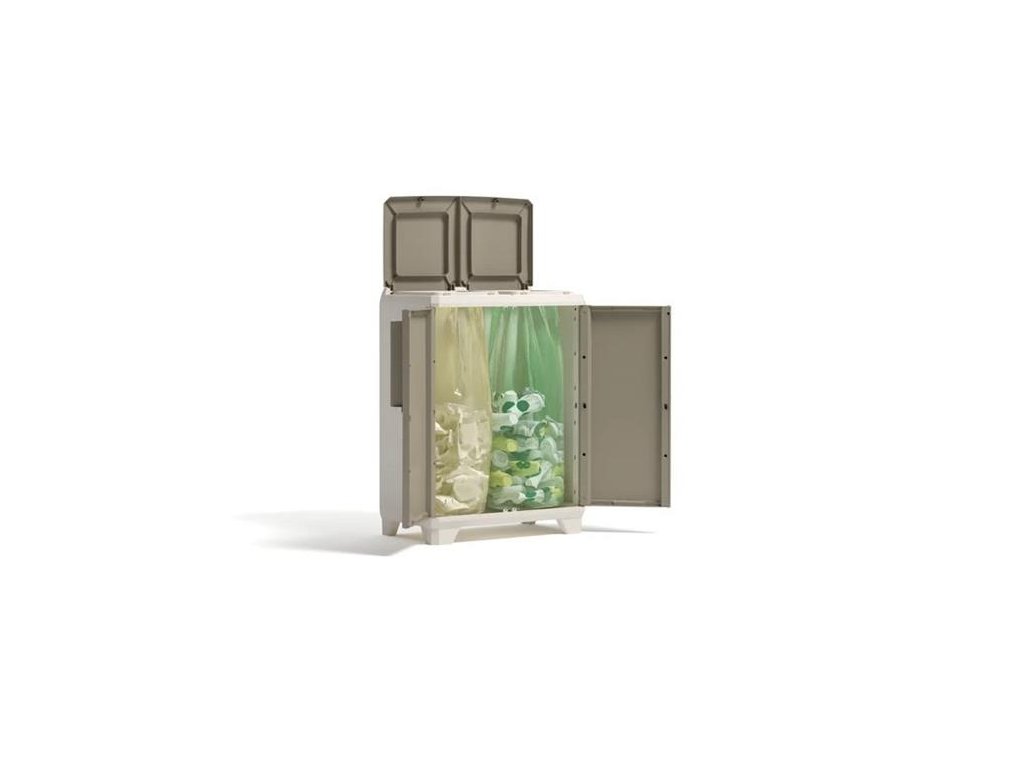KETER Split Premium Wood štýlovo a jednoducho prispieva k ochrane životného prostredia.Svetlobéžová a žltá farba evokuje prírodné drevo, esteticky sa hodí do každého priestoru. -vhodná na uloženie dvoch vriec s objemom do 110 litrov -vyrobená z polypropylénu, odolná voči mechanickému poškodeniu a poveternostným vplyvom, takže ju možno umiestniť v interiéri aj exteriéri, napríklad na krytej terase -ľahko sa čistí - jednoduchá montáž -vybavená dvoma hornými vekami so špeciálne tvarovanými otvormi pre jednoduché otváranie - predné dvojkrídlové dvierka s pohodlnými úchytkami - s nastaviteľnými nohami -rozmery: 39x68 x92 cm (šírka x hĺbka x výška) -hmotnosť: 6,07 kg - vrecia nie sú súčasťou baleniaDodatočné parametre