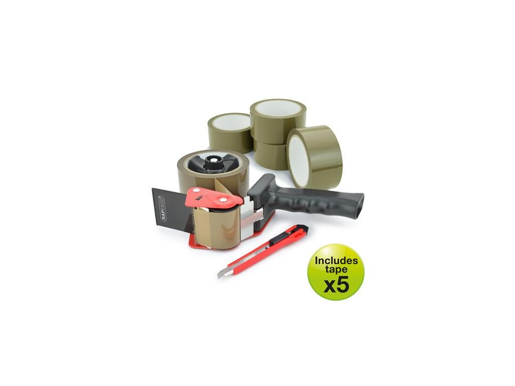Uľahčite si balenie zásielok. -povrch ošetrený antibakteriálnou prísadou Germ-Savvy® -možnosť ovládania jednou rukou -ergonomická rukoväť -jednoduché dopĺňanie -kompatibilita s páskami do veľkosti 50 mm x 66 m -5 ks hnedej baliacej pásky: 50 mm x 50 m - 1 ks noža (9 mm)Značka: RAPESCO