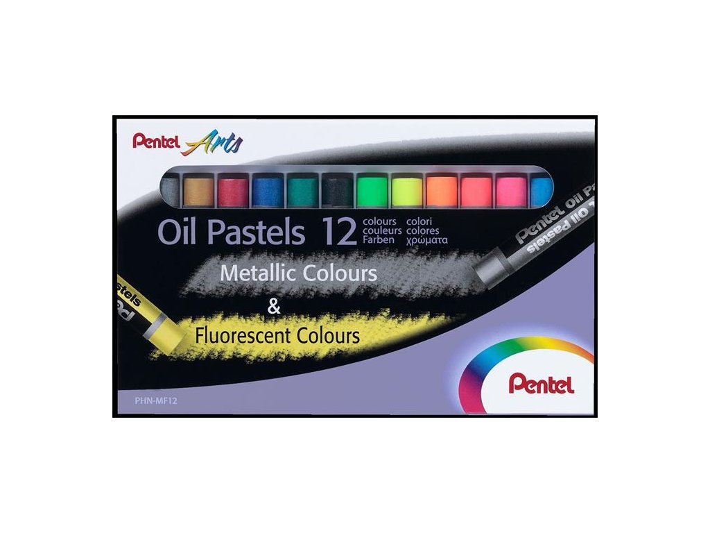 Olejové kriedy, PENTEL, "Arts", 12 rôznych fluo a metalických farieb