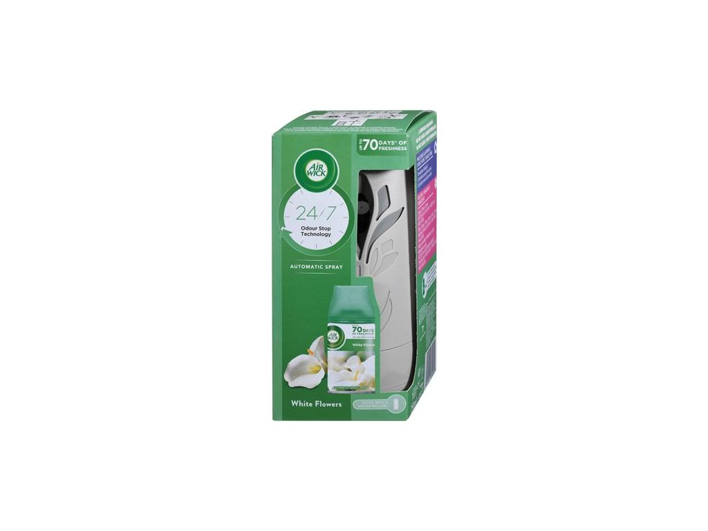Zlepšite príbeh vône Vášho domova s Air Wick Freshmatic® automatickými sprejmi. Zlepšite si náladu s vôňami čerstvo nakrájaných bielych kvetov.Air Wick Freshmatic uvoľňuje výbuchy nepretržitej sviežej vône, takže Váš domov vždy vonia prívetivo. Stačí nastaviť osviežovač vzduchu na Vami preferovanú intenzitu vône a vychutnajte si ako náplň Biele Kvety navonia Váš domov až 70 dní* pri nízkom nastavení.