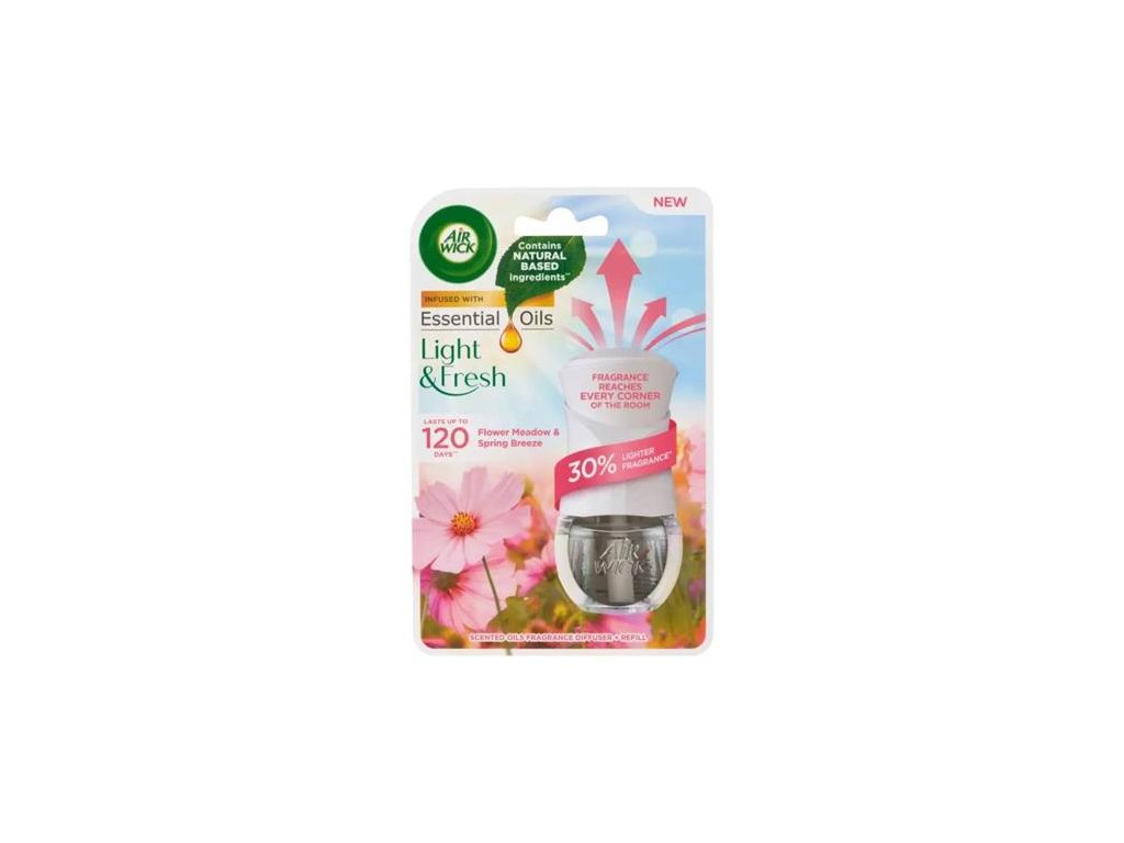 Prevoňajte svoj domov príjemnou vôňou Light&Fresh. Elektrický osviežovač vzduchu, ktorý môžete ľahko zapojiť do zásuvky má elegantný vzhľad. Vďaka svojmu intenzívnemu zloženiu príjemne prevonia menšie aj väčšie miestnosti vášho domova.Vďaka modernej technológii poskytne až 120 dní nepretržitej vône pri nastavení najnižšej intenzity a 12 hodinách používania.Obsiahnuté éterické oleje uvoľňujú do vzduchu jemnú vôňu a neutralizujú nepríjemné pachy.Spoľahlivo neutralizuje pachy a naplní váš domov sviežou kombináciou vôní. Vychutnajte si svoj pokoj a ticho so systémom Air Wick.Značka: AIR WICK