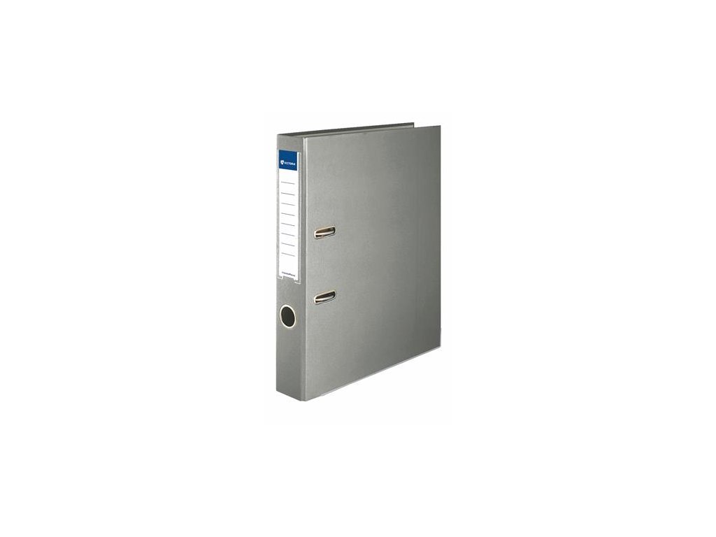 Pákový šanón, 50 mm, A4, PP/kartón, s ochranným spodným kovaním, VICTORIA OFFICE, "Basic", sivý