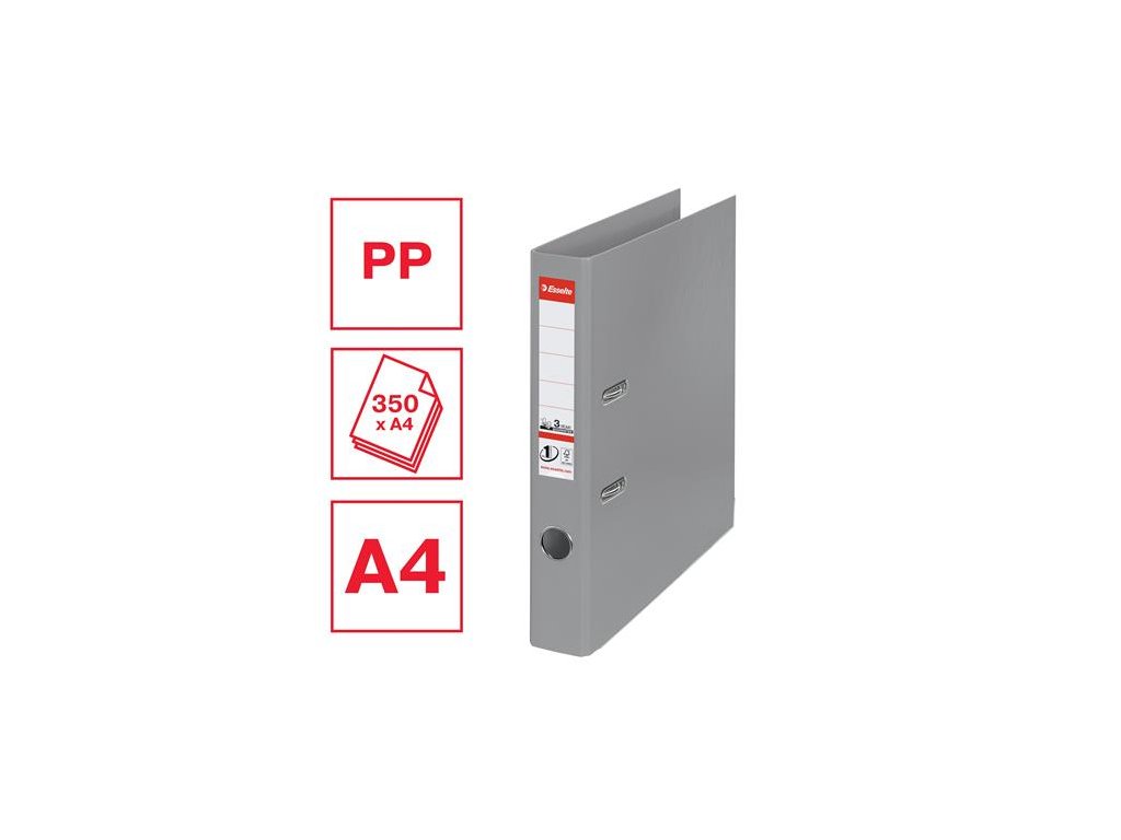 Pákový šanón, 50 mm, A4, PP/PP, s ochranným spodným kovaním, ESSELTE "Standard", sivý
