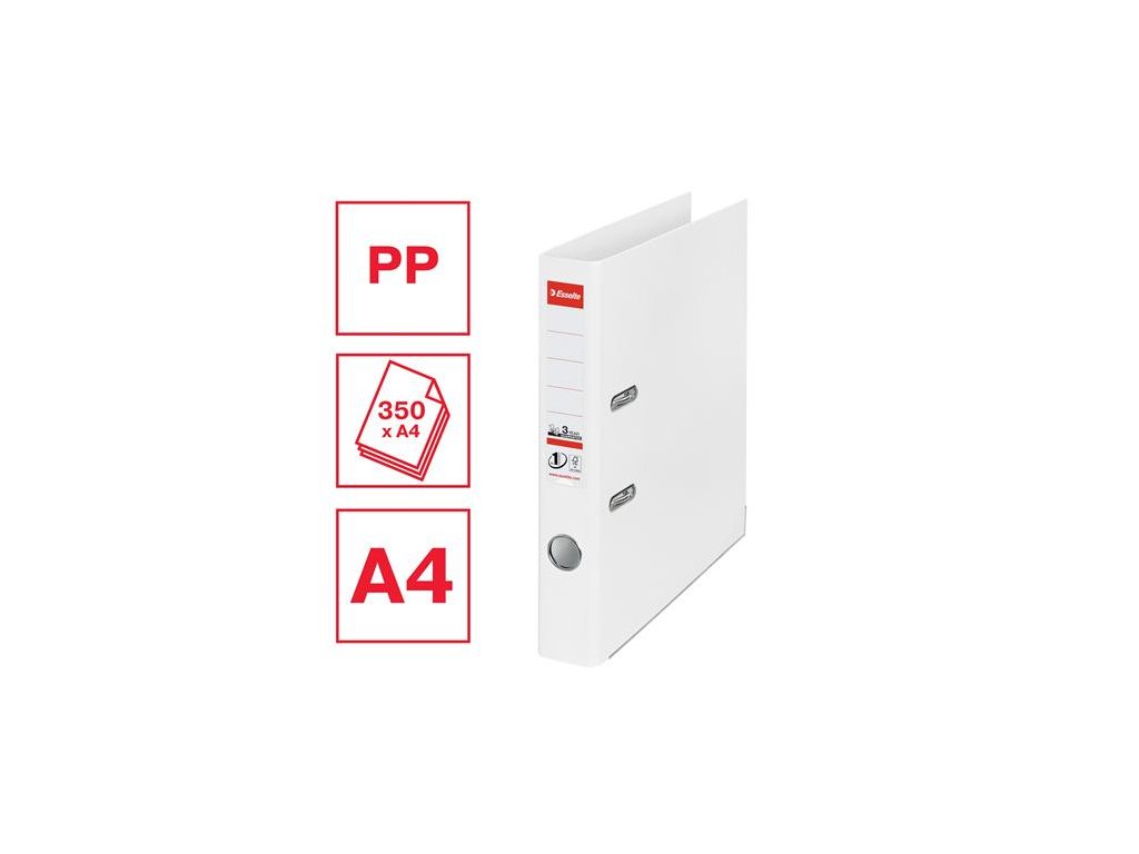 Pákový šanón, 50 mm, A4, PP/PP, s ochranným spodným kovaním, ESSELTE "Standard", Vivida biely