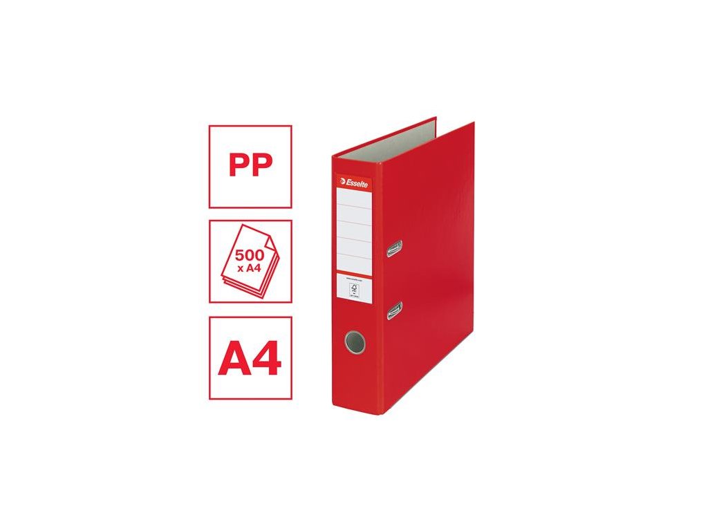 Pákový šanón, 75 mm, A4, PP/kartón, ochranné spodné kovanie, ESSELTE "Economy", červený
