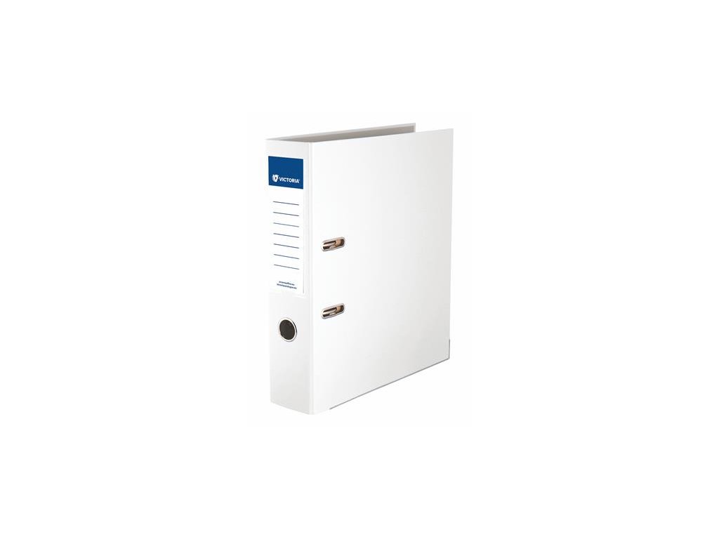 Pákový šanón, 75 mm, A4, PP/kartón, s ochranným spodným kovaním, VICTORIA OFFICE "Basic", biely