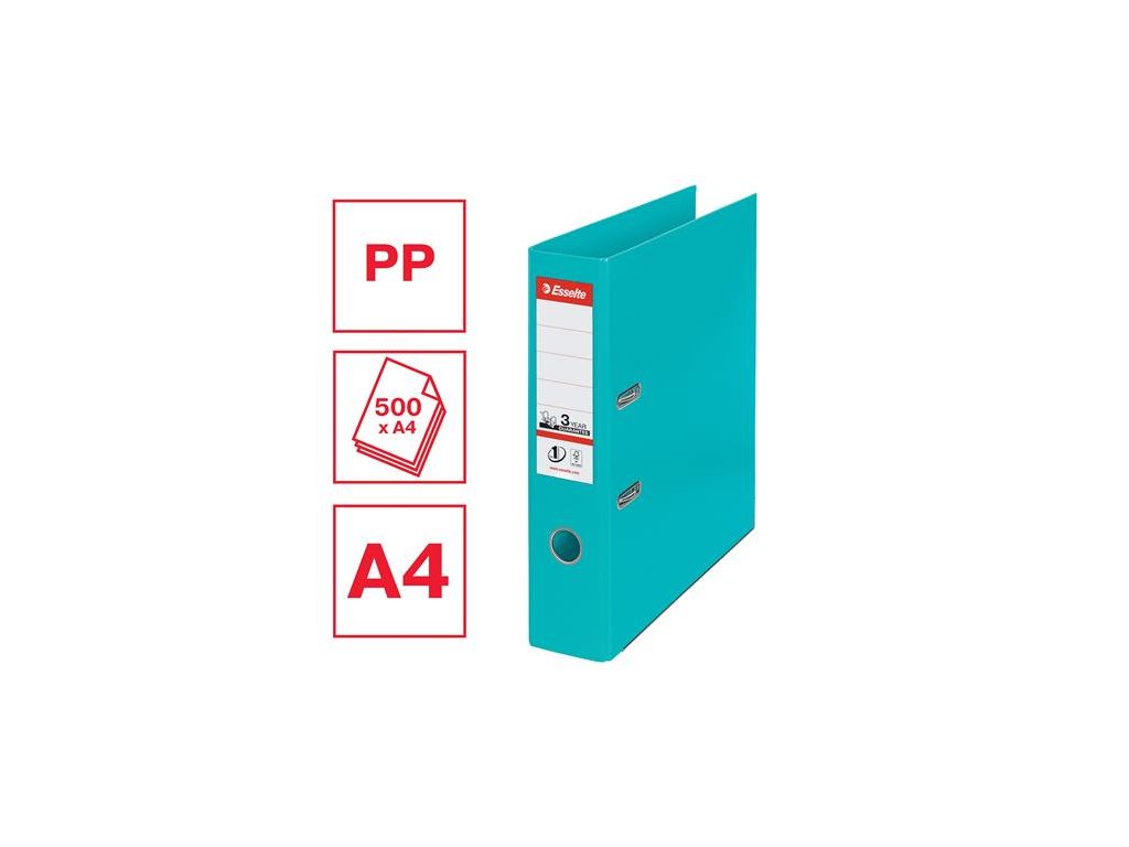 Pákový šanón, 75 mm, A4, PP/PP, s ochranným spodným kovaním, ESSELTE "Standard", tyrkysový