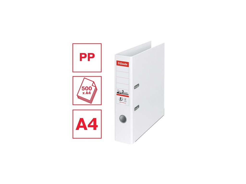 Pákový šanón, 75 mm, A4, PP/PP, s ochranným spodným kovaním, ESSELTE "Standard", Vivida biely