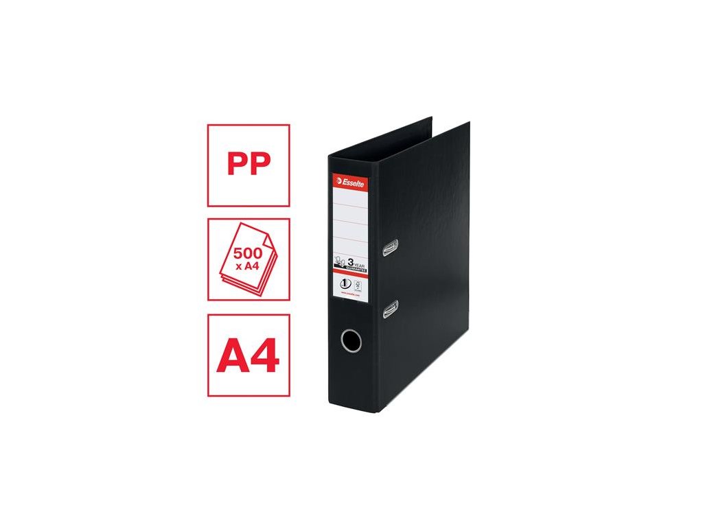 Pákový šanón, 75 mm, A4, PP/PP, s ochranným spodným kovaním, ESSELTE "Standard", Vivida čierny