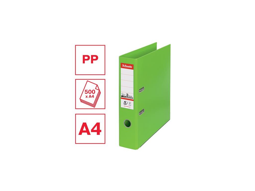 Pákový šanón, 75 mm, A4, PP/PP, s ochranným spodným kovaním, ESSELTE "Standard", Vivida zelený