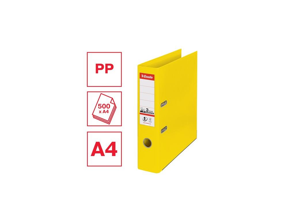 Pákový šanón, 75 mm, A4, PP/PP, s ochranným spodným kovaním, ESSELTE "Standard", Vivida žltý