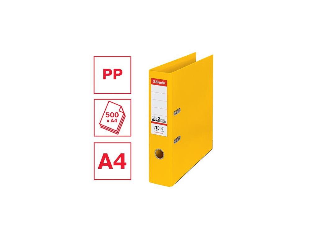 Pákový šanón, 75 mm, A4, PP/PP, s ochranným spodným kovaním, ESSELTE "Standard", žltý