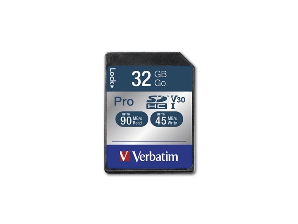 Pamäťová karta, SDHC, 32 GB, CL10/U3, 90/45MB/sec, VERBATIM "PRO"