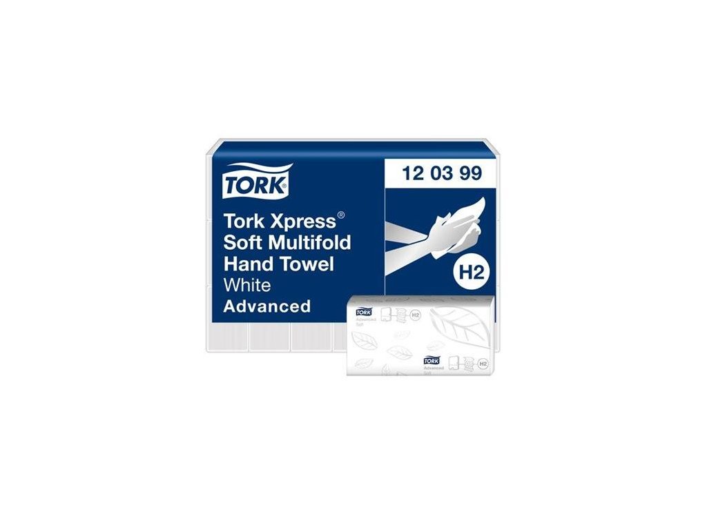 Papierové utierky, Interfold, 2-vrstvové, 136 útržkov, H2 systém, Advanced, TORK "Xpress Soft Multifold", biela