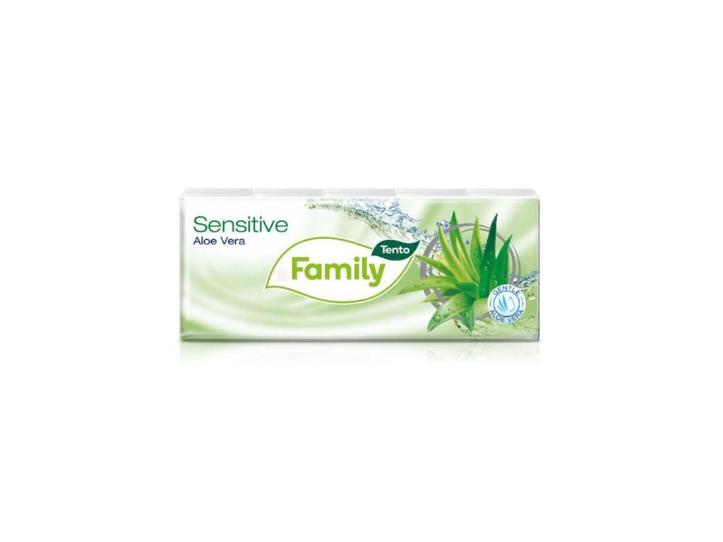 Papierové vreckovky, 3-vrstvové, 10x10 ks, TENTO "Family", aloe vera