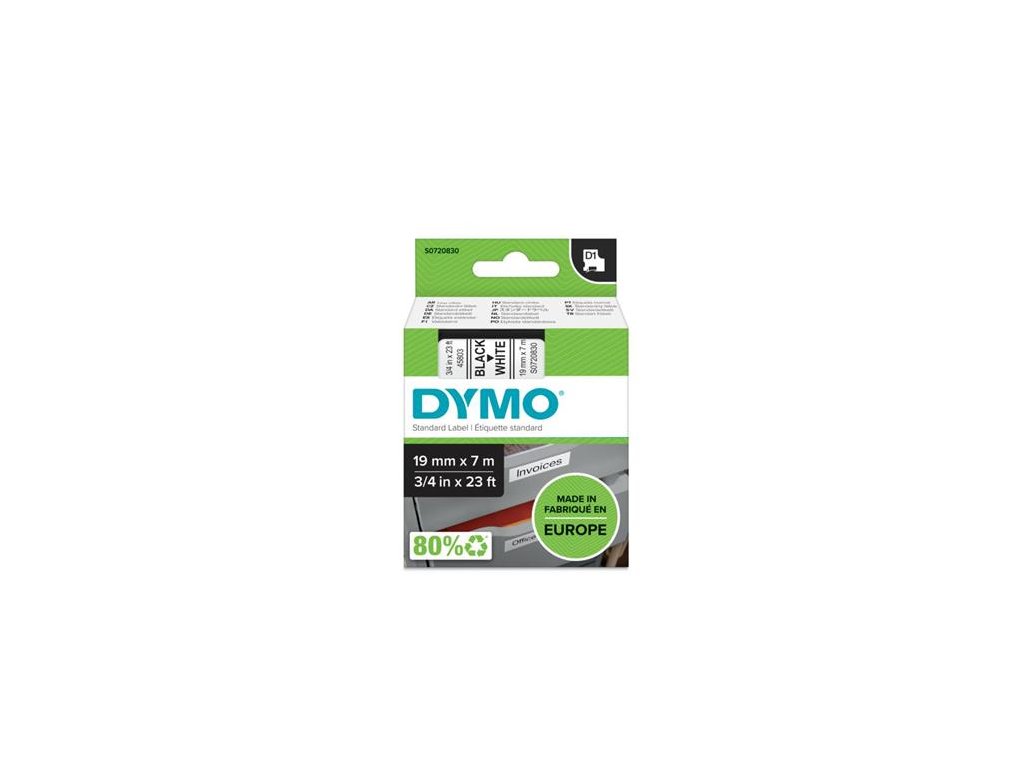 Páska do štítkovača, 19 mm x 7 m, DYMO "D1", biela-čierna