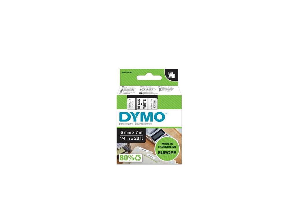 Páska do štítkovača, 6 mm x 7 m, DYMO "D1", biela-čierna