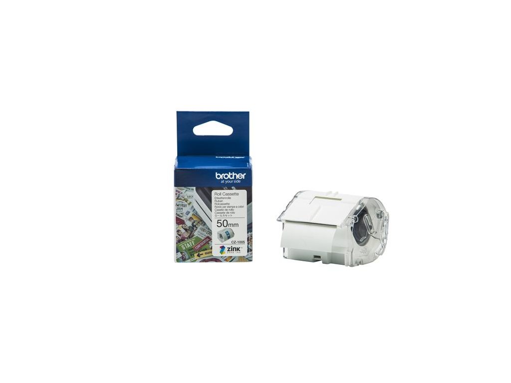 Páska do štítkovača, kontinuálna, 50 mm x 5 m, BROTHER, "CZ-1005", bielo-farebná